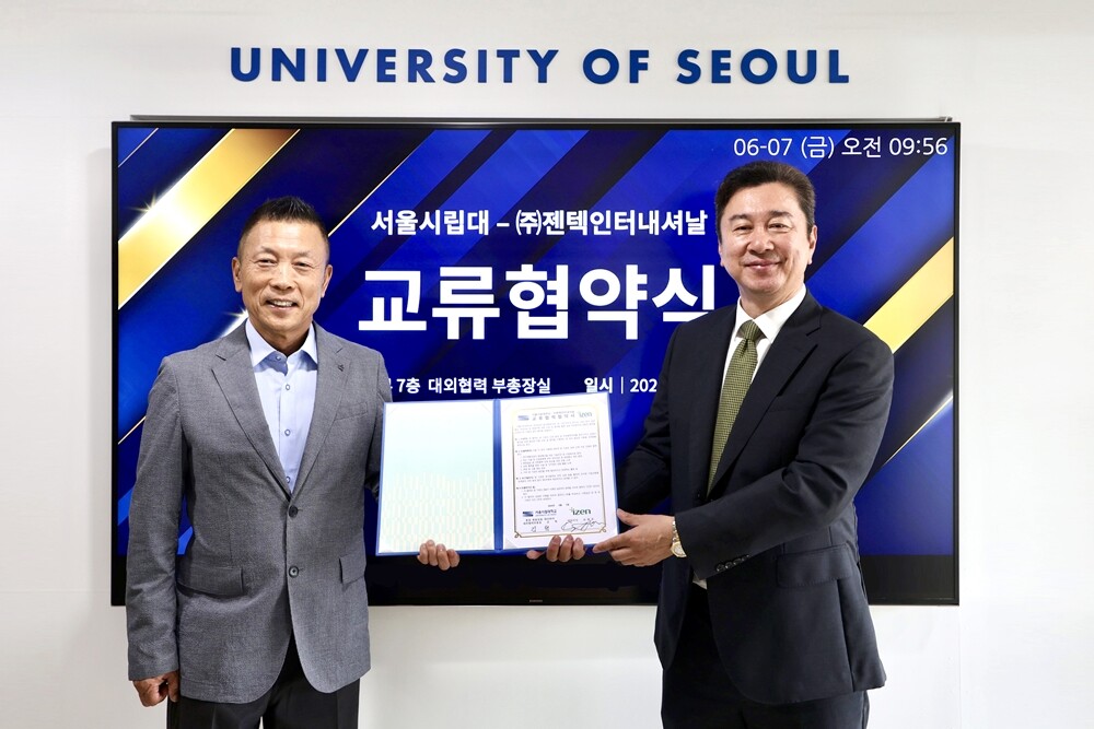 [대학저널 온종림 기자] 서울시립대학교가 ㈜젠텍인터내셔날과 7일 교류 협력 협약을 체결했다. 이번 협약의 목적은 상호 협력을 통해 우호협력관계를 증진하고 공동의 발전을 위해 다양한 교류와 협력을 수행하는 데 있다.