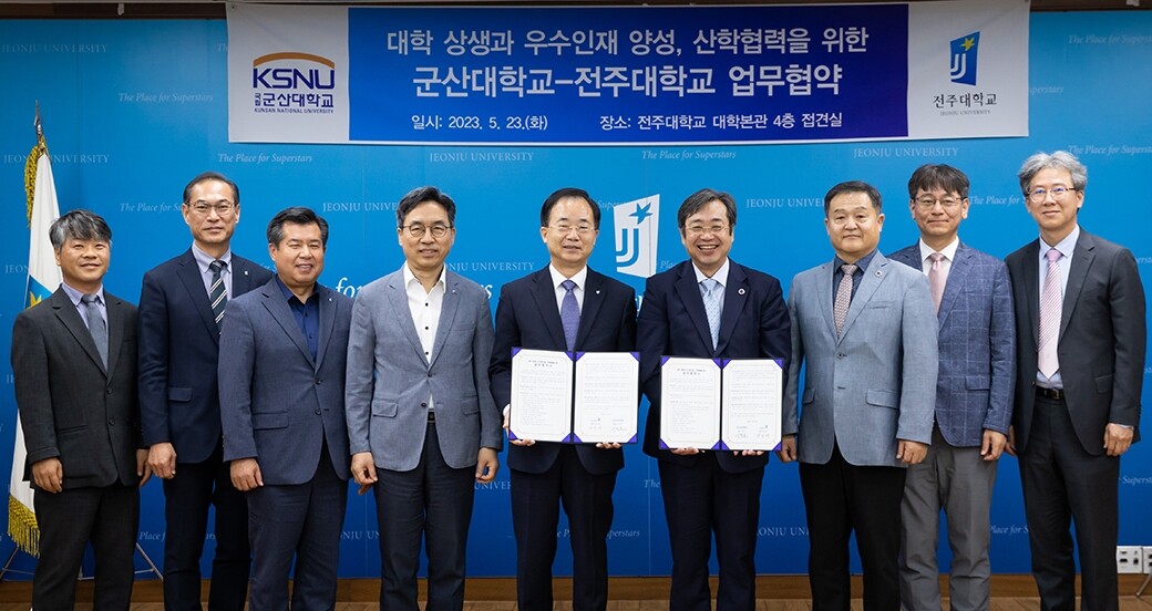 [대학저널 온종림 기자] 전주대학교가 23일 대학 본관 4층 접견실에서 군산대학교와 업무협약을 체결했다.