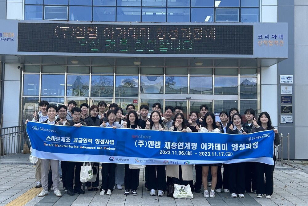 [대학저널 온종림 기자] 한국기술교육대학교 스마트제조 고급인력 양성사업단(이하 사업단)이 이차전지 국내 1위 기업인 ㈜엔켐 신입사원 공개채용 지원자를 대상으로 ‘채용연계형 아카데미 양성과정’을 운영한다.