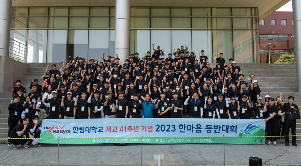 한림대가 16일 개교 41주년을 기념해‘한마음 등반대회’를 개최했다. 사진=한림대 제공 |