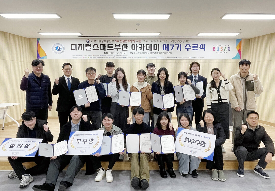 [대학저널 이선용 기자] 국립부경대학교 디지털스마트부산 아카데미사업단은 12월 24일 오전 정보융합관 컨버전스홀에서 디지털스마트부산 아카데미 제7기 ‘AI 프로젝트과정’ 수료식을 개최했다고 29일 밝혔다.