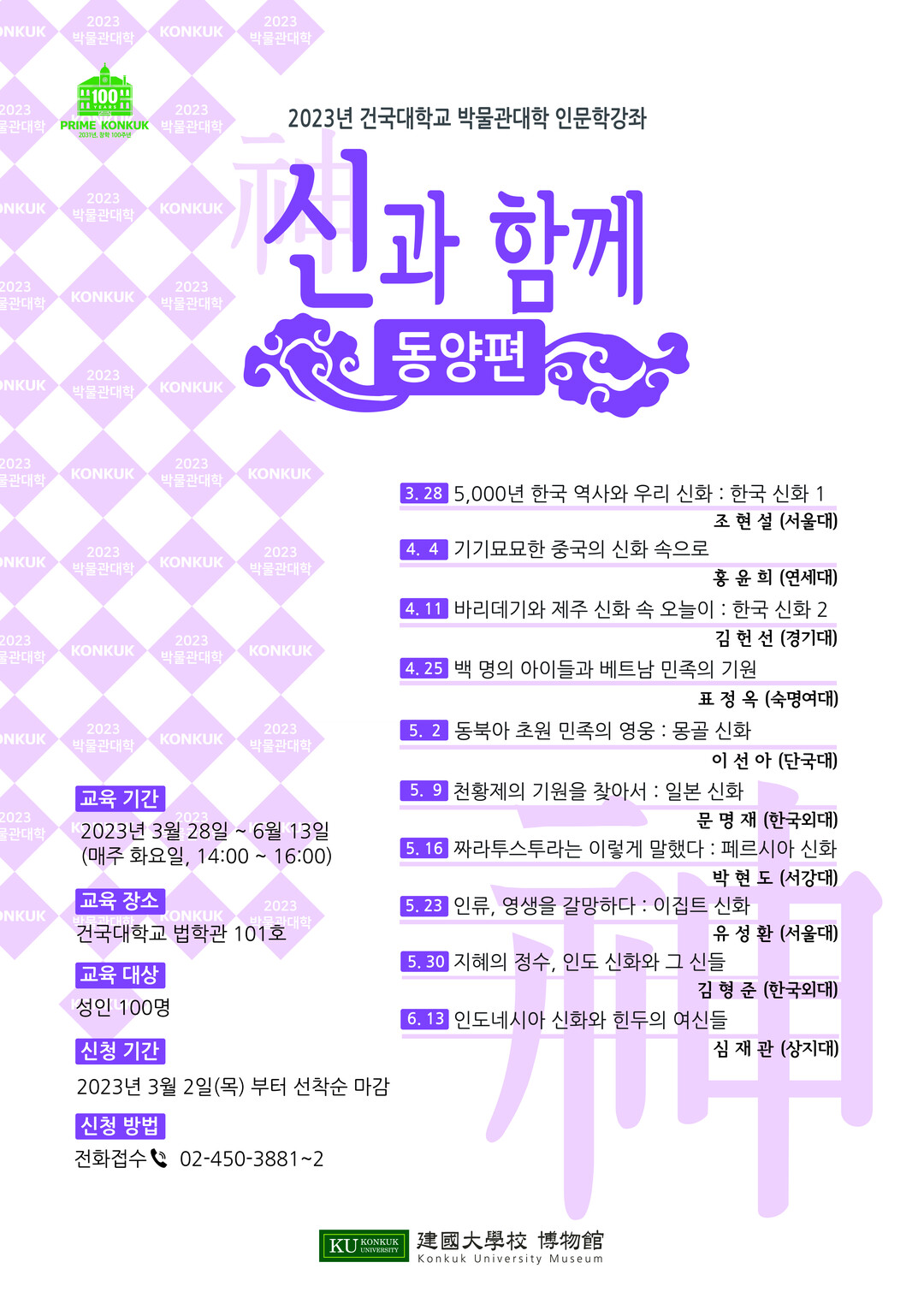 1학기는 ‘신과 함께-동양편’으로 ▲5000년 한국 역사와 우리 신화 ▲기기묘묘한 중국의 신화 속으로 ▲지혜의 정수, 인도 신화와 그 신들 ▲신화와 힌두의 여신들 등 베트남과 페르시아, 이집트를 비롯해 10개의 동양 신화를 다룬다.