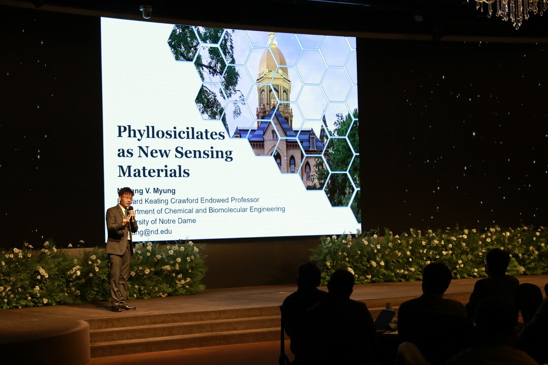반도체 패키징 전문가인 한양대 ERICA캠퍼스 유봉영 교수가 ‘Electrochemical technologies for advanced semiconductor packaging technologies’로 기조강연을 했으며, 센서분야의 세계적인 석학 노틀담 대학(University of Norte Dame)의 명노상 교수 (Nosang V. Myung)가 ‘Phyllosilicates as New Gas Sensing Materials’를, 가천대 임재홍 교수가 ‘Study on enhancing electrical property of CNT fiber through copper electroplating with additives’를 발표했다.