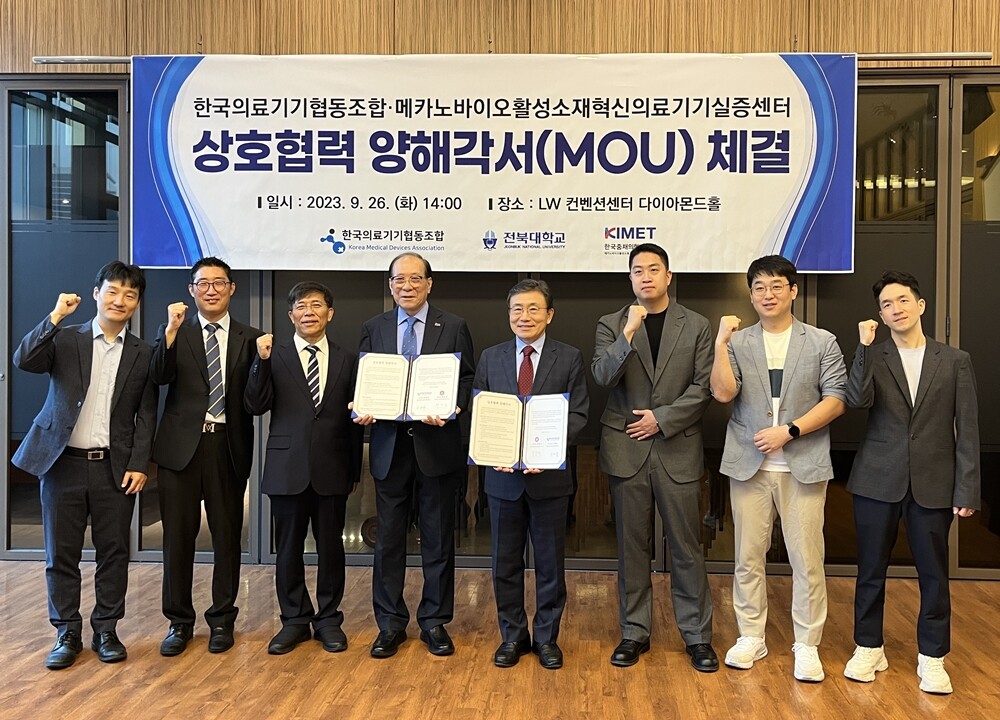 [대학저널 온종림 기자] 전북대학교 메카노바이오활성소재 혁신의료기기 실증센터와 한국의료기기협동조합이 의료기기 기업의 애로문제 해소와 두 기관 간 협력 증진을 위해 26일 협약을 체결했다.