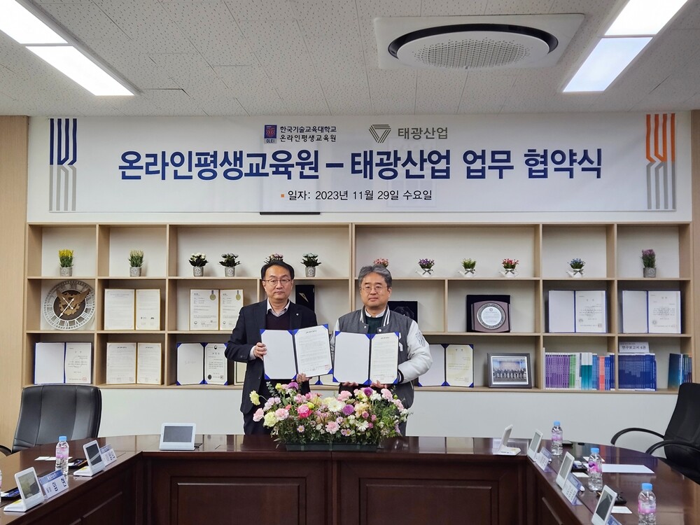 한기대 온라인평생교육원과 태광산업(주)이 29일 업무협약을 체결했다. 사진=한기대 제공 |