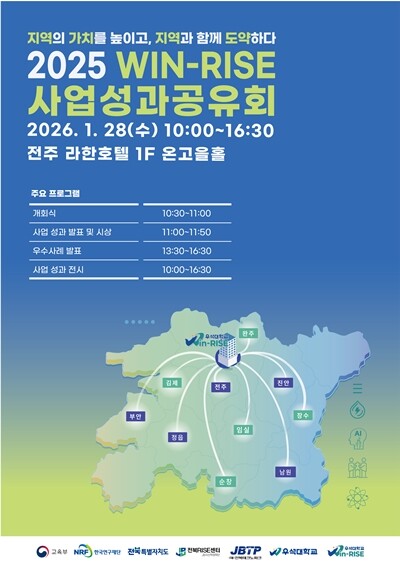 [대학저널 온종림 기자] 우석대학교가 오는 28일 오전 10시부터 라한호텔 전주 1층 온고을홀에서 ‘2025 WIN-RISE 사업 성과공유회’를 개최한다.