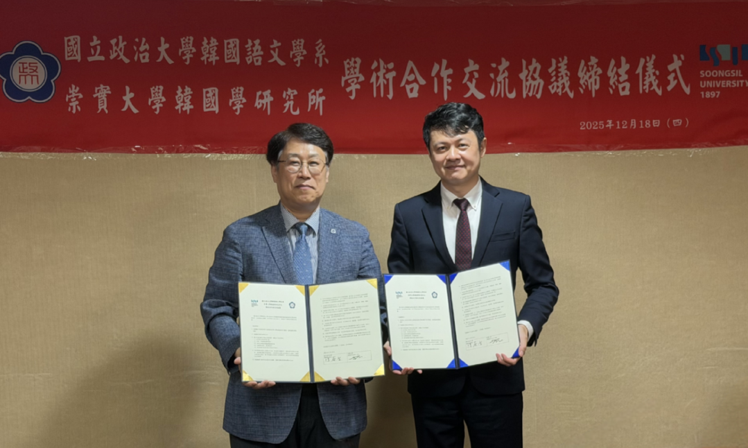 협약식에는 국립정치대학교 한국어문학과 진경지(陳慶智) 학과장을 비롯해 차봉준 숭실대 한국학연구소장과 양 기관 관계자들이 참석했다.
