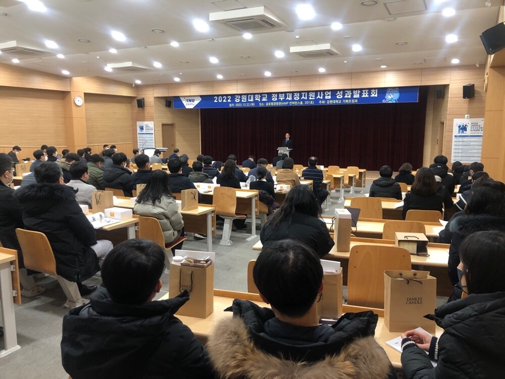 [대학저널 온종림 기자]강원대학교는 22일 글로벌경영관 AMP컨퍼런스홀에서 2022년 정부재정지원사업 성과발표회를 열었다.