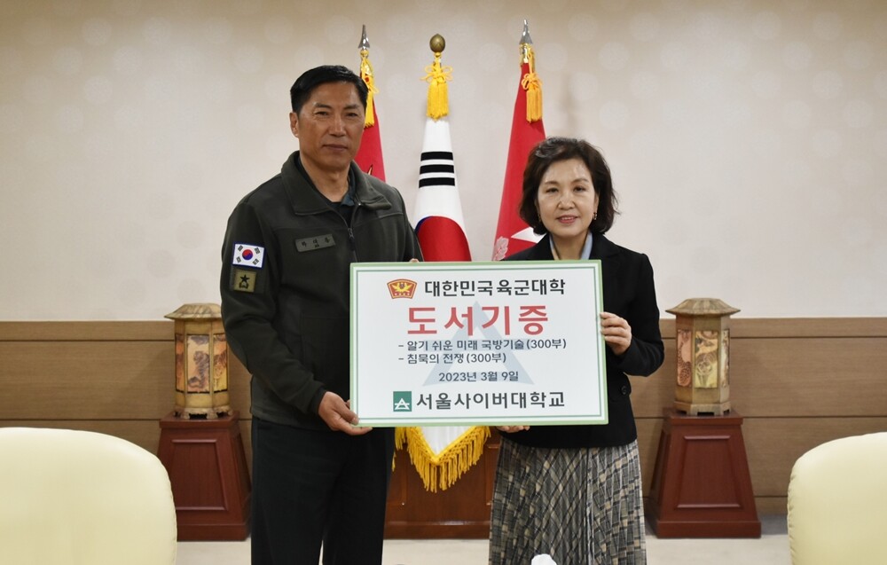 [대학저널 온종림 기자] 서울사이버대학교는 협약 기관인 대한민국육군대학에 ‘알기 쉬운 미래 국방기술’(서울사이버대 제작) 300권과 ‘침묵의 전쟁’ 300권 등 도서 600권을 기증했다고 13일 밝혔다.