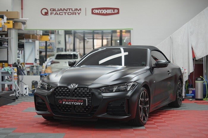 또한 퀀텀팩토리의 전체 무광 PPF 인스톨은 오차없이 정교하게 커팅하는 컴퓨터 재단 프로그램과 숙련된 인스톨러가 각 패널의 크기에 맞춰 정밀하게 필름을 핸드커팅 시공하는 방식을 하이브리드 형태로 목적에 맞게 혼합해서 인스톨 하는 것이 특징이다. 전용 스퀴징 기술을 활용해 필름 밀착 과정에서 도장면과 필름 사이에 들뜨는 부분이 없도록 정밀하게 시공하며 필름 본연의 묵직하면서도 고급스러운 무광 질감을 극대화한다.