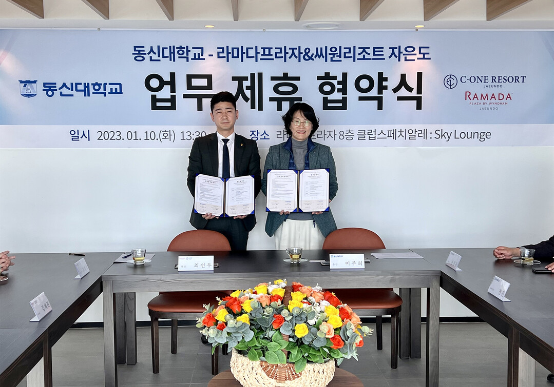 [대학저널 김진수 기자] 동신대학교는 지오그룹 라마다프라자&씨원리조트 자은도와 ‘현장 실무형 우수인재 양성과 관광산업 발전을 위한 산학협력 협약'을 체결했다고 11일 밝혔다.