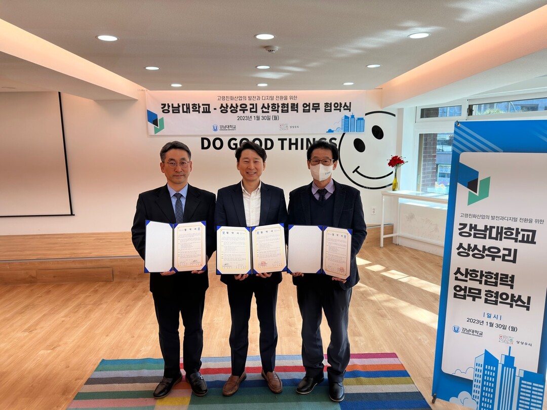 [대학저널 온종림 기자] 강남대학교는 지난달 30일 디지털 전환 고령친화 분야 전문인력 양성을 위해 경영 컨설팅 기업 상상우리와 업무협약을 체결했다고 3일 밝혔다.