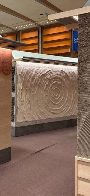 PH우진은 1985년부터 축적해 온 특수도료 기술을 기반으로 한 마감 솔루션을 전면에 내세웠다. 라임플라스터와 천연 흙 마감재 등 ‘쾌적한 실내 환경’이라는 성능적 요구를 분명히 하면서도, 다양한 수입 자재를 활용한 미장 방식의 결과물을 선보였다.