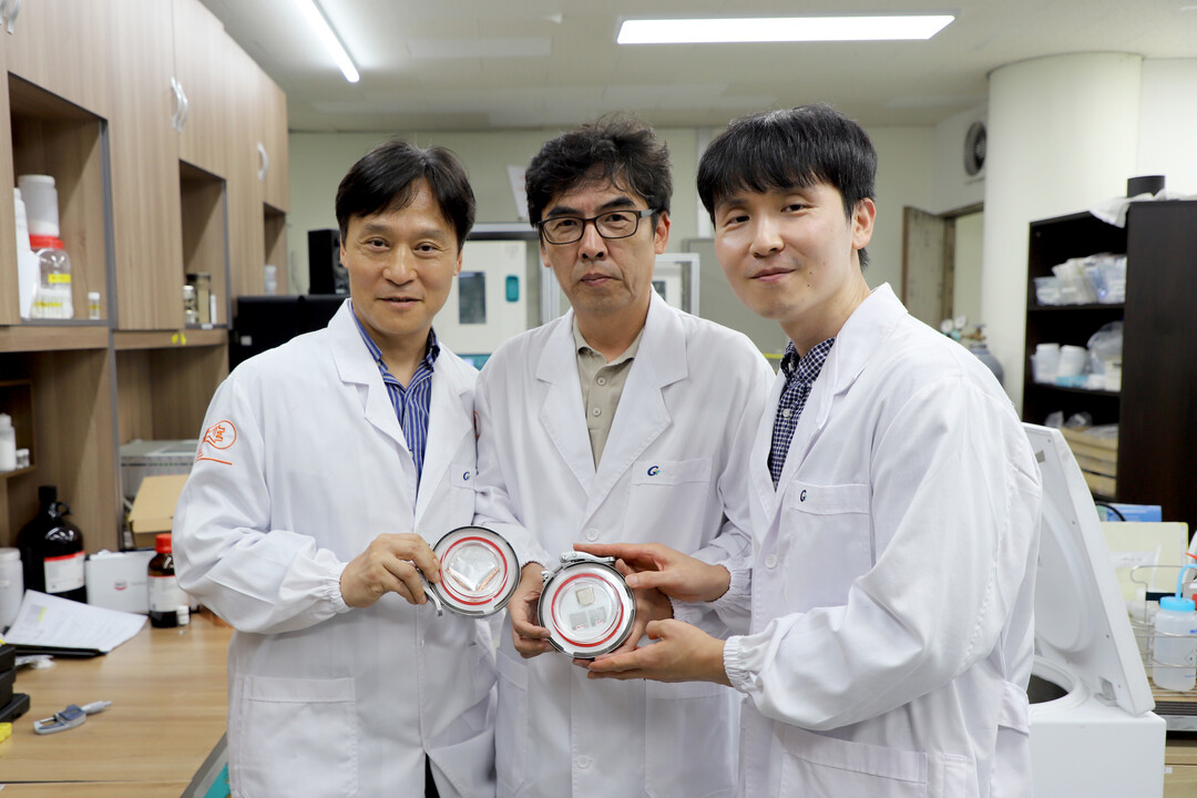 왼쪽부터 윤영수 교수, 아이엘사이언스 오성호 CTO, 고재환 박사. |