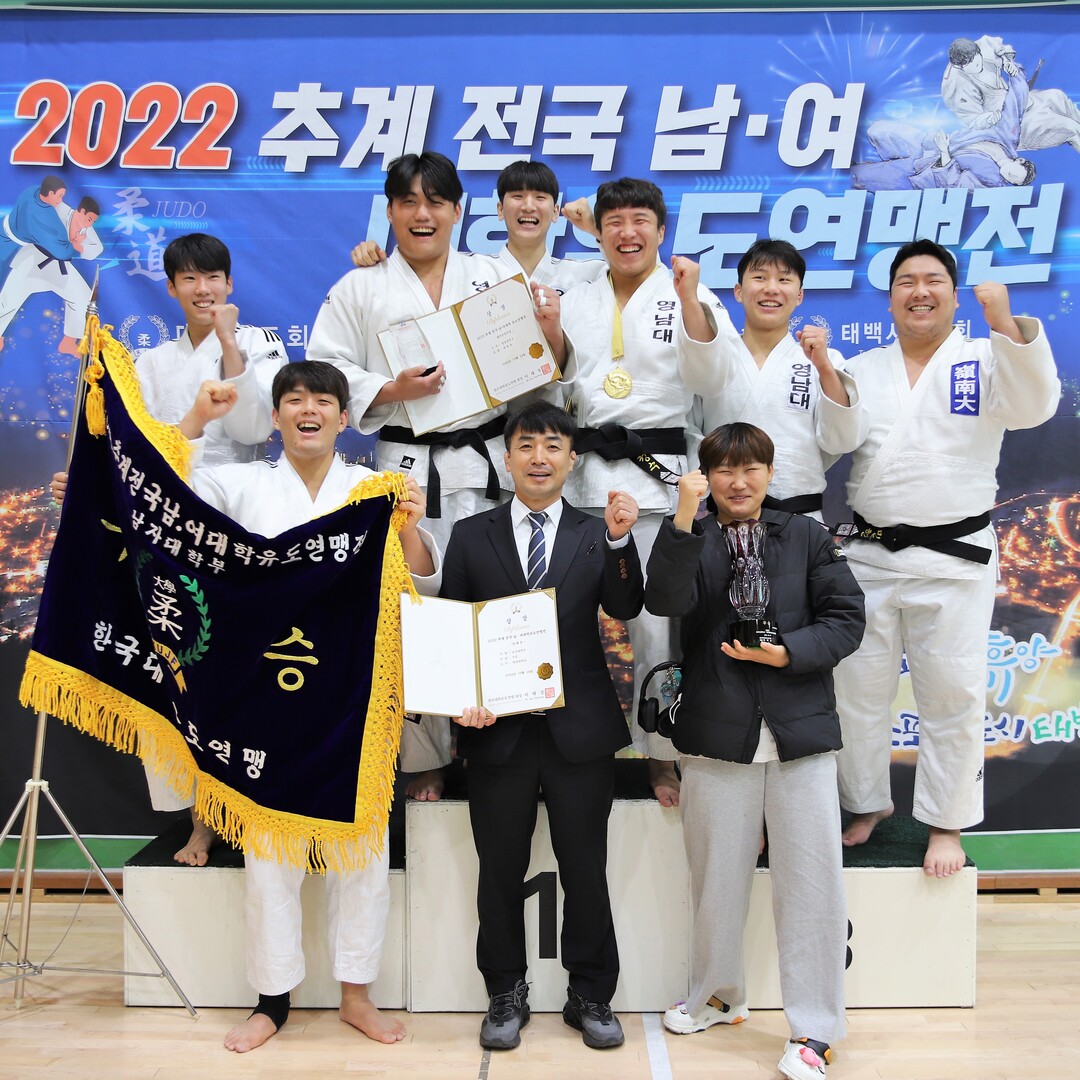 26일 영남대에 따르면 지난 16~19일 강원도 태백시 장성체육관에서 열린 2022 추계 전국 남녀 대학 유도연맹전에서 영남대는 준결승에서 국민대를 4대1, 결승전에서 선문대를 4대1로 누르고 우승했다. 개인전에서는 김정수(-90kg급)가 1위에 올랐고, 최원호는 대회 최우수선수상을 수상했다.