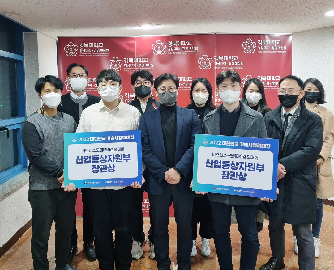 [대학저널 오혜민 기자]경북대학교는 융합기술경영학과 석사과정생들로 구성된 ‘팀시몬스팀’과 ‘MOT미래’팀이 2022 대한민국 기술사업화대전 비즈니스모델(BM) 경진대회의 공공기술과 민간기술 2개 분야에서 각각 1위에 올라 산업통상자원부 장관상을 수상했다고 5일 밝혔다.