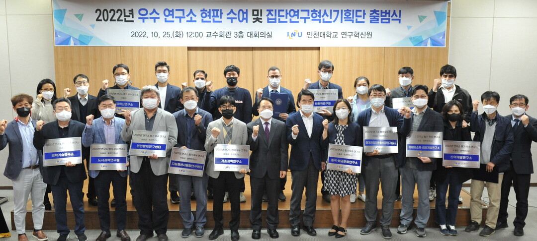 [대학저널 오혜민 기자]인천대학교는 25일 2022년 연구소 평가에 따른 ‘우수 연구소 현판 수여·집단연구혁신기획단 출범식’을 가졌다.