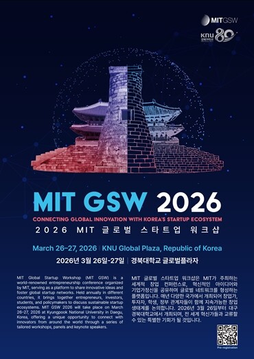 [대학저널 온종림 기자] 경북대학교가 미국 메사추세츠공과대학교(MIT)와 함께 국제 창업 워크샵인 ‘MIT 글로벌 스타트업 워크샵(MIT Global Startup Workshop, 이하 MIT GSW)’을 오는 26일부터 27일까지 경북대 글로벌플라자에서 개최한다. 우리나라에서 열리는 것은 2011년 서울대 개최 이후 15년 만이다.