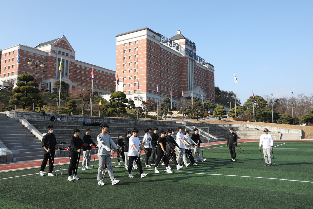 | 경동대 학생들이 노르딕 워킹 초급지도자 과정 교육에 참여하고 있다. 사진=경동대 제공 |