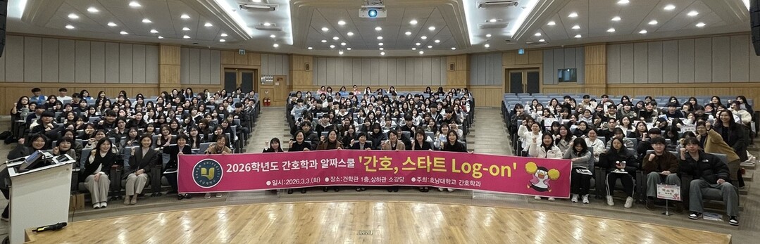 [대학저널 임춘성 기자] 호남대학교 간호학과는 3월 3일 신입생 입학식에 이어 ‘간호, 스타트 로그온(Log-on)’을 주제로 알짜스쿨을 개최했다.