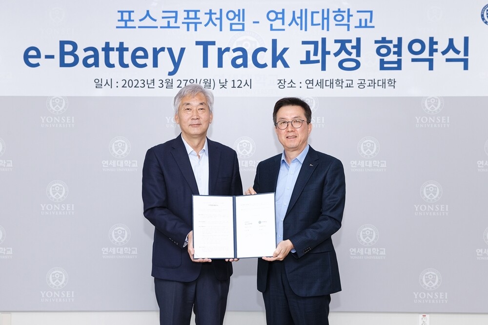 이에 따라 연세대 공대와 포스코퓨처엠은 올 하반기부터 배터리 소재 석·박사 과정 e-Battery Track을 운영한다.