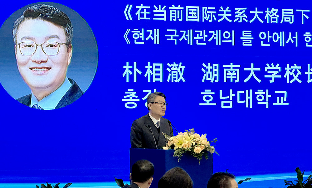 박상철 호남대 총장이 한중교육고위지도자포럼에 참석해 주제 발표를 하고 있다. 사진=호남대 제공 |