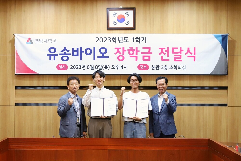 [대학저널 온종림 기자] 연암대학교는 지난 8일 후배 영농인재 양성을 위한 특별한 장학금, 유송바이오 장학금 전달식을 했다고 12일 밝혔다.