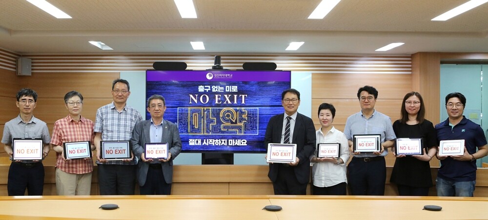 [대학저널 온종림 기자] 이성근 성신여자대학교 총장이 20일 경찰청과 식품의약품안전처, 한국마약퇴치운동본부가 공동으로 주관하는 ‘NO EXIT(출구 없음)’ 마약 퇴출 캠페인에 주요 보직자들과 동참했다.