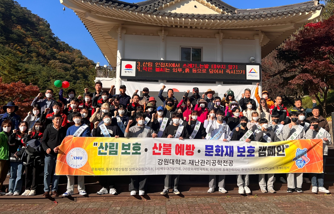 [대학저널 오혜민 기자]강원대학교는 소방방재학부 재난관리공학전공이 지난 22일 강원도 동해시 무릉계곡에서 등산객들을 대상으로 학과 홍보와 산불 예방 캠페인을 실시했다고 28일 밝혔다.