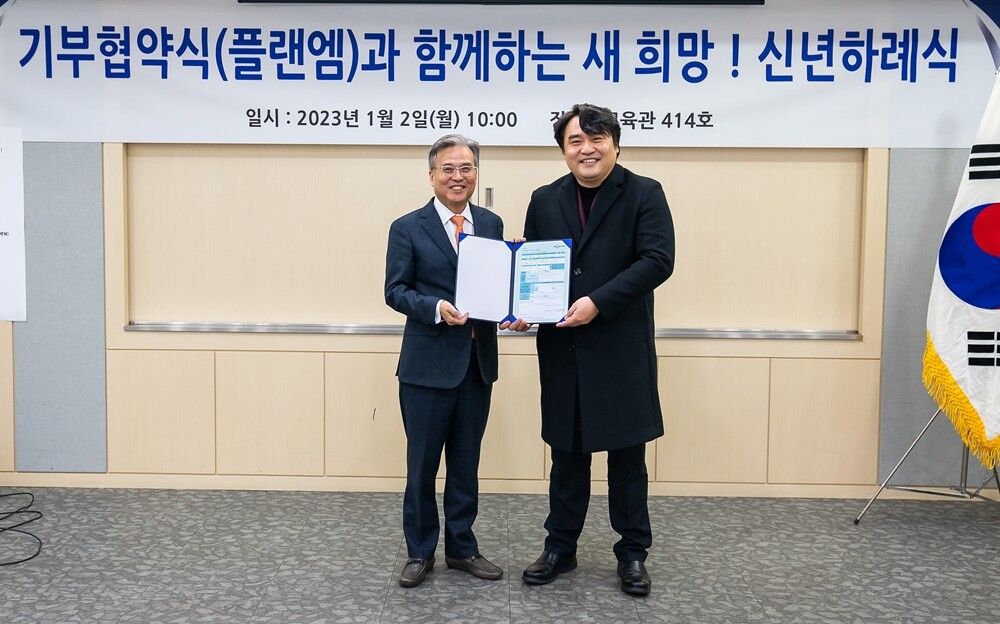 경기대는 2일 이윤규 총장과 이민규 플랜엠 대표가 현금과 현물 등 총 100억원 규모의 기부약정과 산학협력 협약서를 체결했다고 밝혔다.