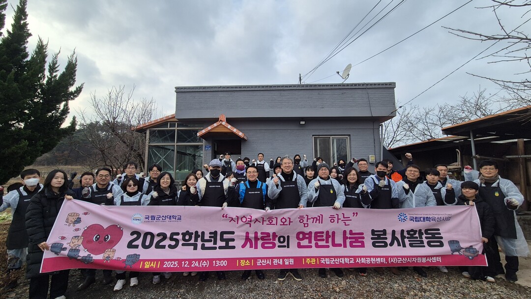 [대학저널 이선용 기자] 국립군산대학교 사회공헌센터는 지난 12월 24일 군산시 일원에서 취약가구를 대상으로 연탄 1,000장을 전달하는 연탄 나눔 봉사활동을 실시했다고 26일 밝혔다.