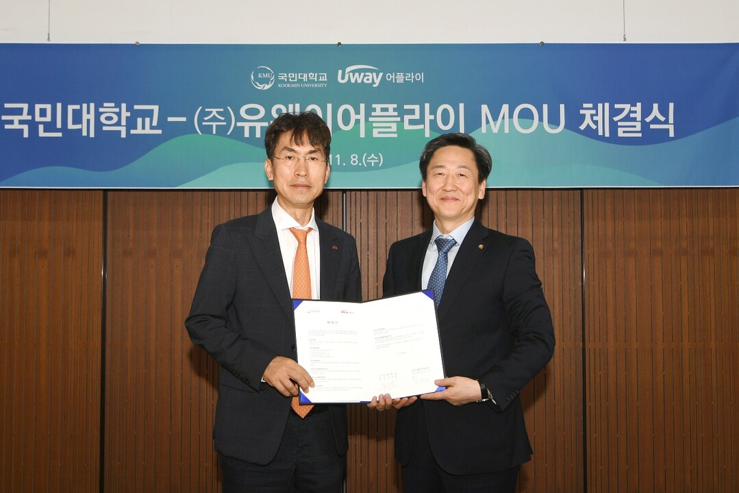 [대학저널 이선용 기자]국민대학교와 ㈜유웨이어플라이가 11월 8일 국민대 본부관에서 MOU를 체결했다.