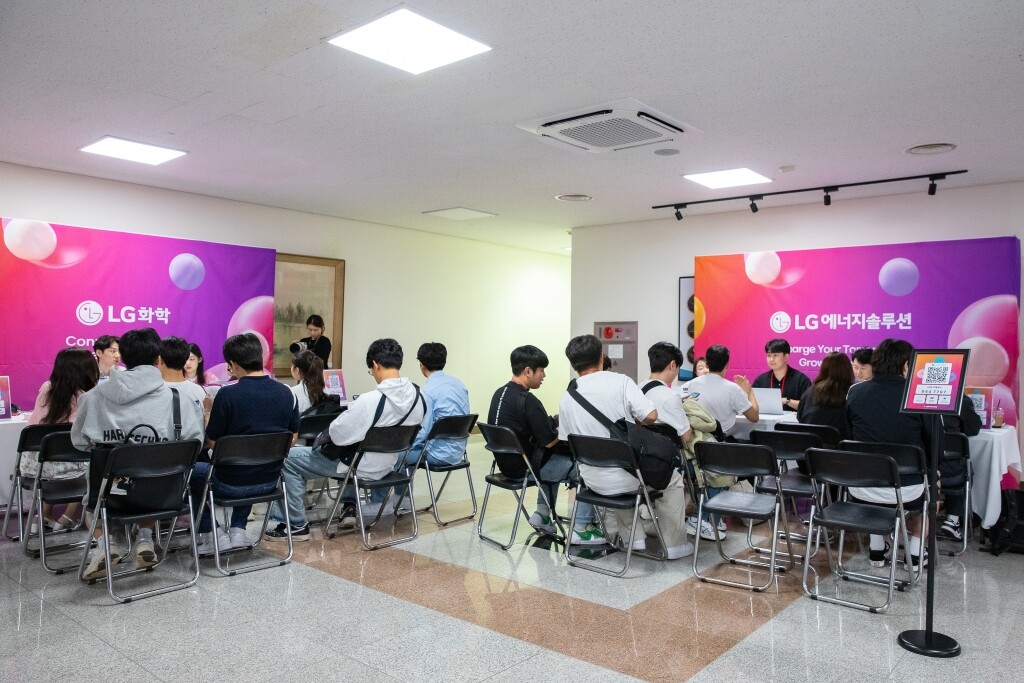2023년 LG DAY 행사에서, LG화학과 LG에너지솔루션 취업 상담 부스에 참여 중인 학생들. 사진=연암대 제공 |