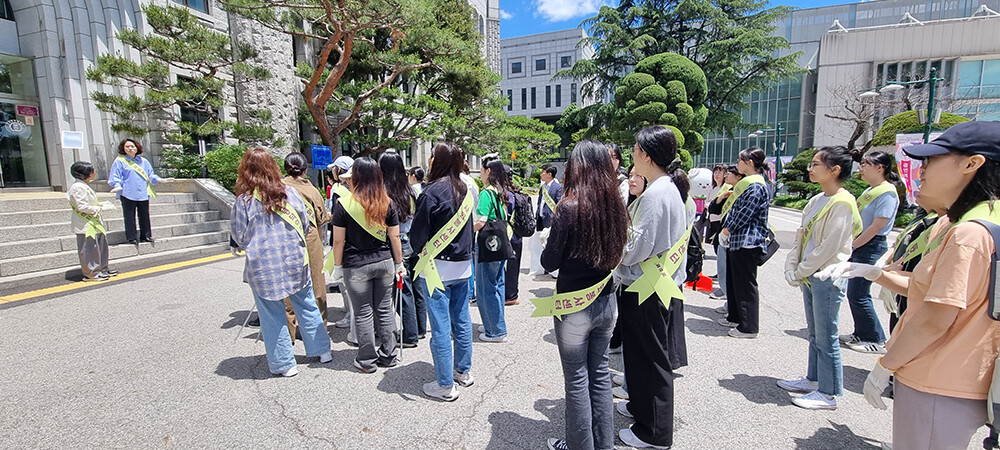 [대학저널 이선용 기자] 동덕여자대학교 사회봉사센터는 지난 5월 28일 김명애 총장을 비롯해서 교수, 직원, 재학생 등 46명이 참여한 ‘동덕 클린봉사단’ 프로그램을 수행했다.