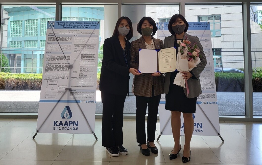 이번 학술대회는 ‘전문간호사의 연구성과·감염병시대 전문간호사의 역할’이라는 주제로 열렸으며, 방 교수와 박 교수는 ‘전문간호사의 간호전문직관과 셀프리더십이 환자안전관리활동에 미치는 영향’이라는 주제로 발표해 호평을 받았다.