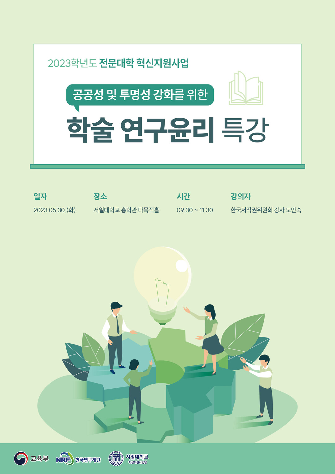 | 지난달 30일 서일대학교가 실시한 학술 연구윤리 특강 포스터. 자료=서일대 제공 |