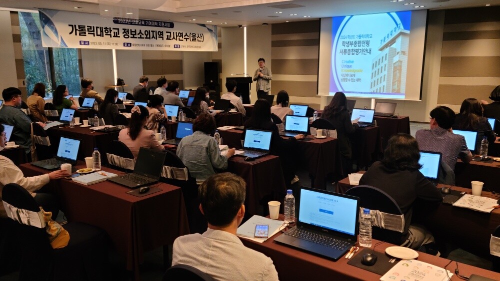 가톨릭대가 울산에서 ‘정보소외지역 교사 연수’를 하고 있다. 사진=가톨릭대 제공 |