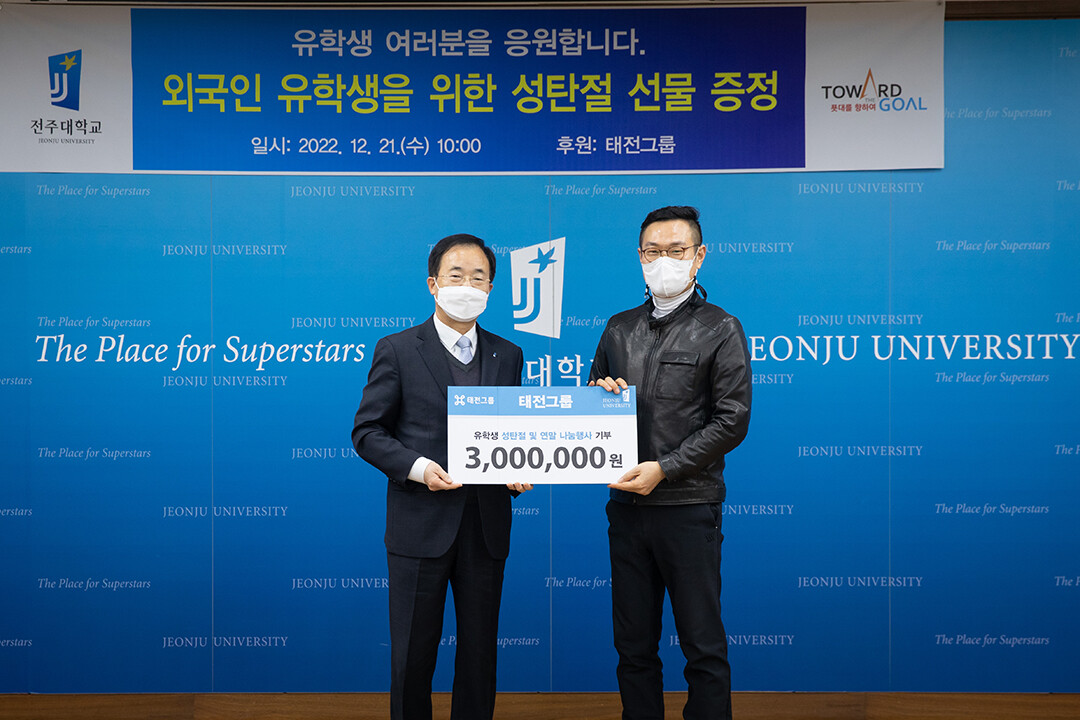 오영석 태전그룹 대표는 “고국을 떠나 한국에서 유학하는 유학생 이웃들이 따뜻한 성탄절을 보내길 바라는 마음으로 후원에 참여하게 되어 기쁘다며, 앞으로도 우리 지역의 유학생들을 돕는 일 적극 앞장서겠다”고 말했다.