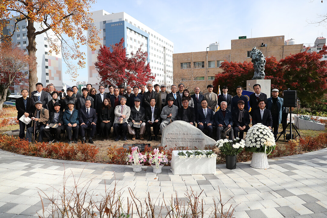 [대학저널 온종림 기자]부산대학교는 25일 대한민국 건국훈장에 추서된 민족혁명가 산수(山水) 이종률(1905~1989) 부산대 교수의 기림비를 새롭게 단장해 새벽벌도서관 앞 민주언덕으로 이전하는 제막식을 했다.