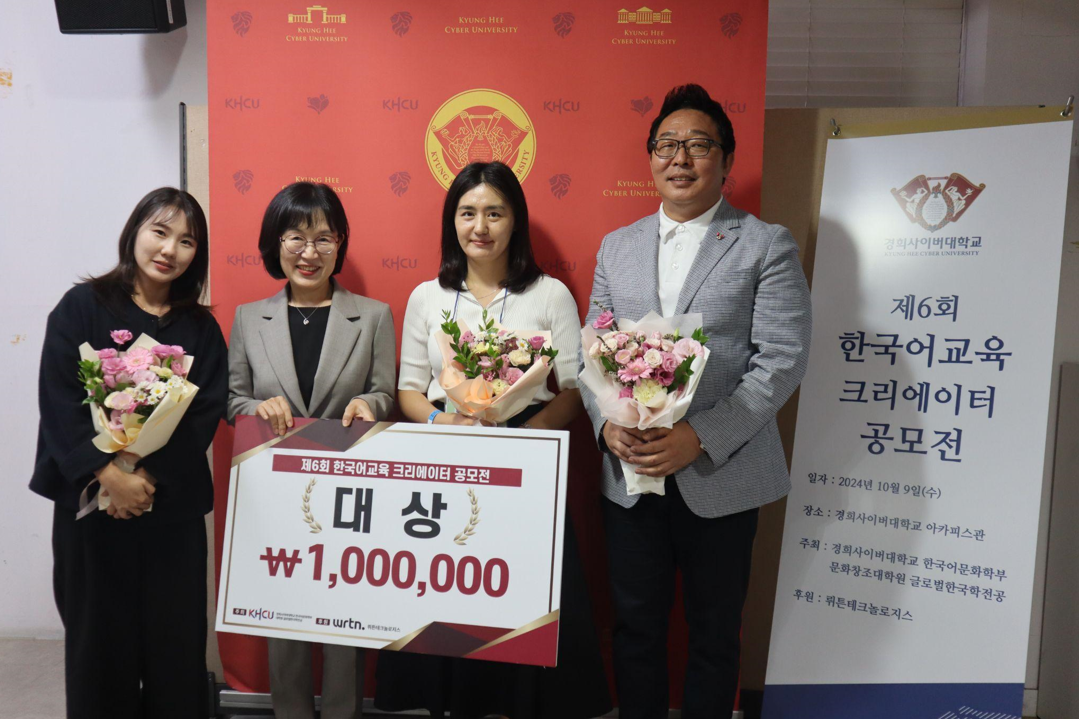 [대학저널 이선용 기자] 경희사이버대학교 한국어문화학부, 문화창조대학원 글로벌한국학전공이 주최하고 뤼튼테크놀로지스가 후원한 ‘제6회 한국어교육 크리에이터 공모전’ 시상식이 지난 10월 9일 한글날에 경희사이버대 아카피스관에서 온·오프라인으로 동시에 진행됐다.