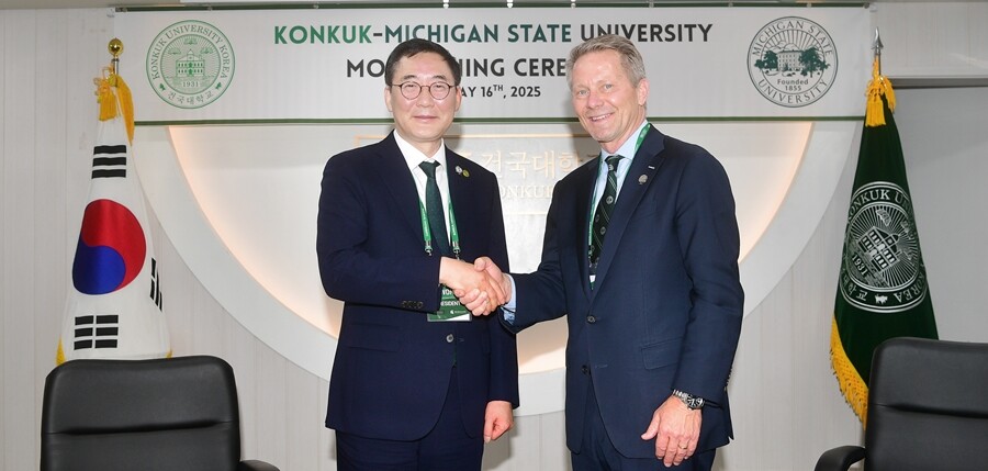 [대학저널 온종림 기자] 건국대학교와 미국 미시간주립대학교(Michigan State University, MSU)가 지난 16일 건국대 행정관 대회의실에서 업무협약(MOU)을 체결하고 글로벌 공동 연구, 인재 교류, 교육 협력 등 전방위 협력 체계를 구축하기로 했다. 이번 협정은 양교 간 교육 및 연구 협력뿐만 아니라 학생·교직원 교류 확대를 위한 포괄적 기반이 될 것으로 기대를 모으고 있다.