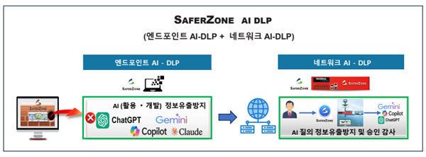 AI DLP기업 (주)세이퍼존(대표 권창훈)은 AI 서비스를 업무 활용 이용 시 중요/기밀/민감/개인 정보가 전세계로 실시간 공유 및 유출되는 것을 탐지 및 차단한다. 글로벌 TOP 레벨의 SaferZone AI DLP는 엔드포인트 단과 네트워크 단 각각의 멀티 레이어 계층에서 생성형 AI 사용 환경에서 발생할 수 있는 데이터 유출 위험에 대응한다. 최근 공공기관, 기업에서 생성형 AI 서비스의 업무 활용이 증가함에 따라, AI 자체의 개발 및 활용 과정에서 발생하는 데이터 유출을 방지하는 것이 중요해지고 있다.