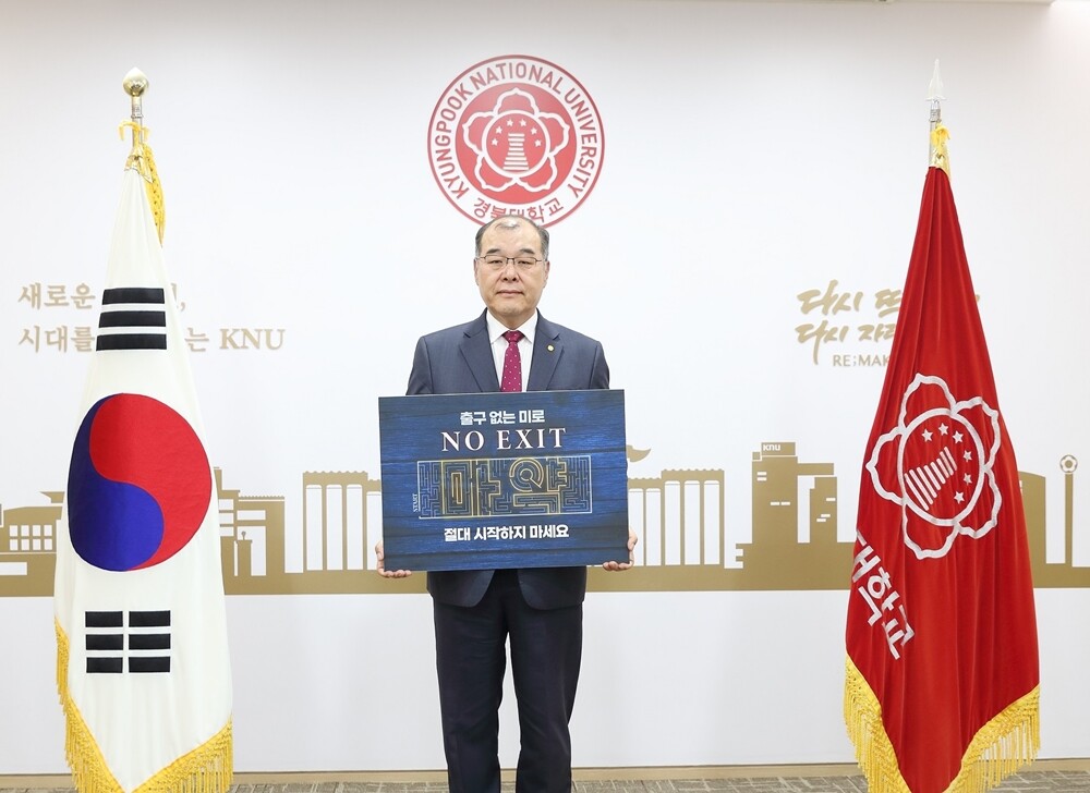 [대학저널 온종림 기자]홍원화 경북대학교 총장이 24일 마약 범죄 예방을 위한 ‘출구 없음(NO EXIT)’ 릴레이 캠페인에 동참했다.