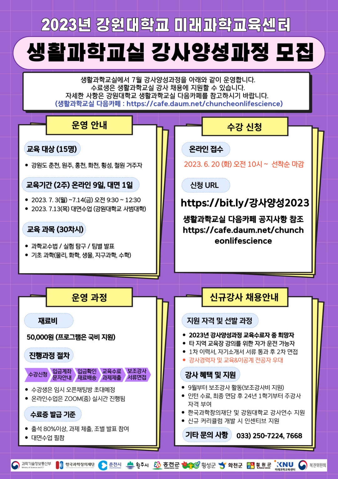 자세한 사항은 생활과학교실로 문의하거나 생활과학교실 다음 카페에서 확인할 수 있다.