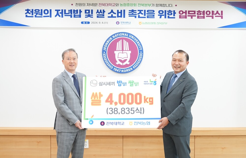 [대학저널 온종림 기자] ‘천원의 아침밥’을 통해 학생들에게 든든한 하루의 시작을 선물하고 있는 전북대학교가 농협중앙회 전북본부와 함께 2024년도 2학기‘천원의 저녁밥’을 운영하기로 했다.