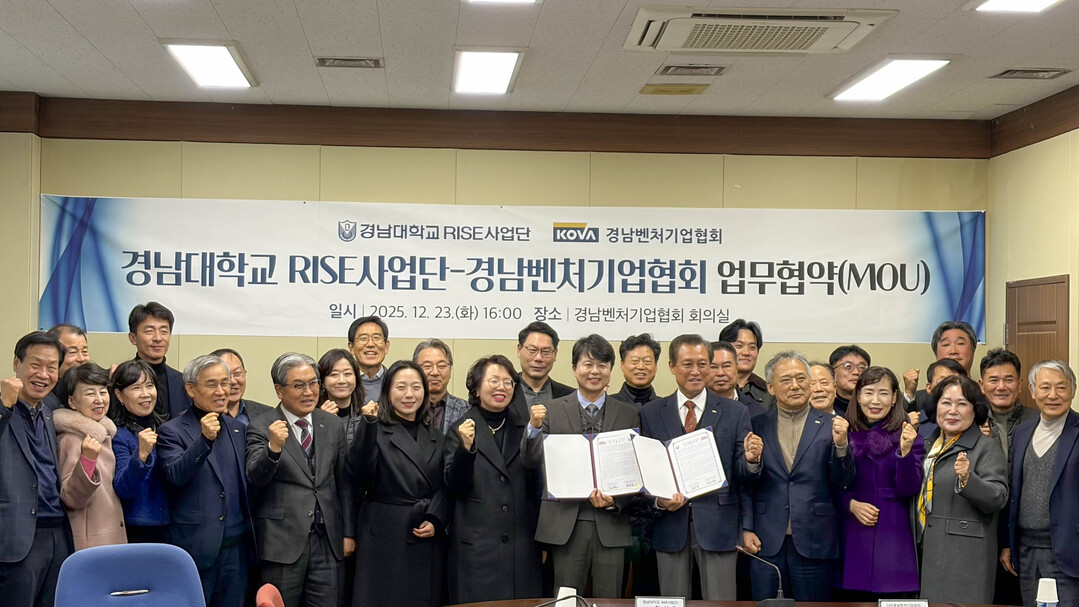 [대학저널 이선용 기자] 경남대학교 RISE사업단은 지난 12월 23일 오후 4시 경남지방중소벤처기업청 3층 중회의실에서 경남벤처기업협회와 지역 산업 혁신 및 인재 양성을 위한 업무협약을 체결했다.