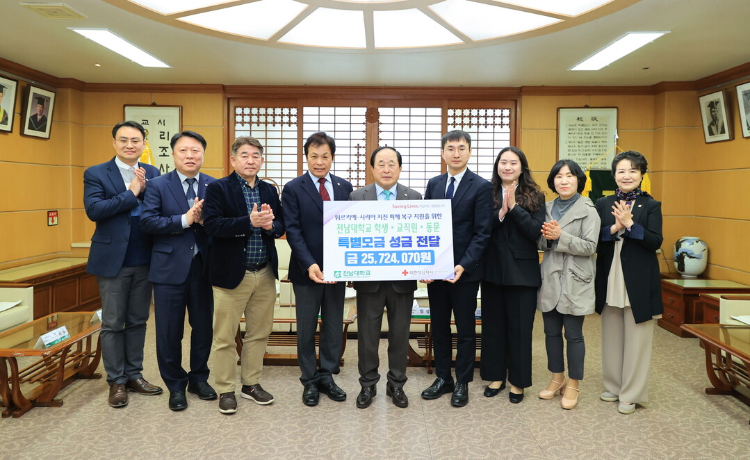 [대학저널 조영훈 기자] 전남대학교가 튀르키예와 시리아의 지진 피해 복구를 위해 21일 성금 2,500여 만 원을 적십자사에 전달했다.