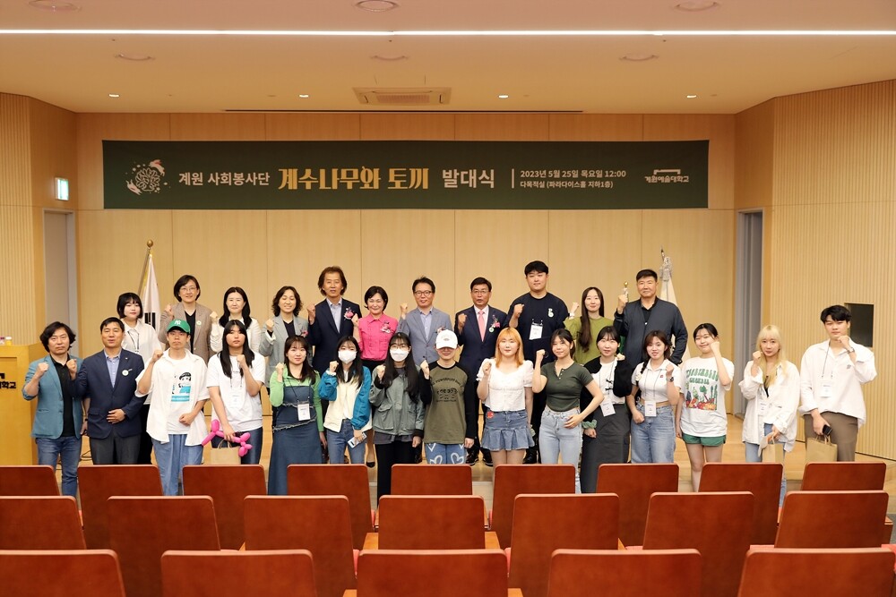 [대학저널 온종림 기자] 계원예술대학교는 지난 25일 예술 창작봉사 활동을 통해 나눔과 가치를 공유하고 실천하기 위한 사회봉사단 ‘계수나무와 토끼’ 발대식을 가졌다고 26일 밝혔다.
