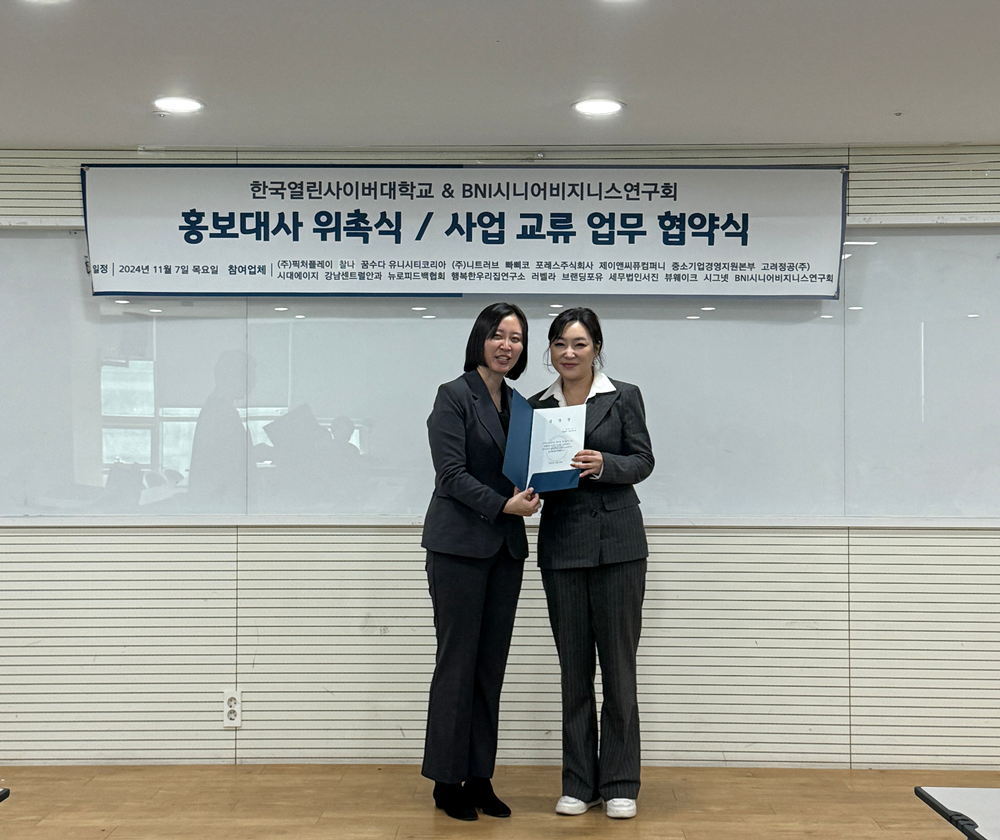 브랜딩포유 장이지 대표가 한국열린사이버대학교와 시니어비즈니스연구회에서 주최한 홍보대사 위촉식 및 사업 교류 업무 협약식에서 홍보대사로 임명됐다.