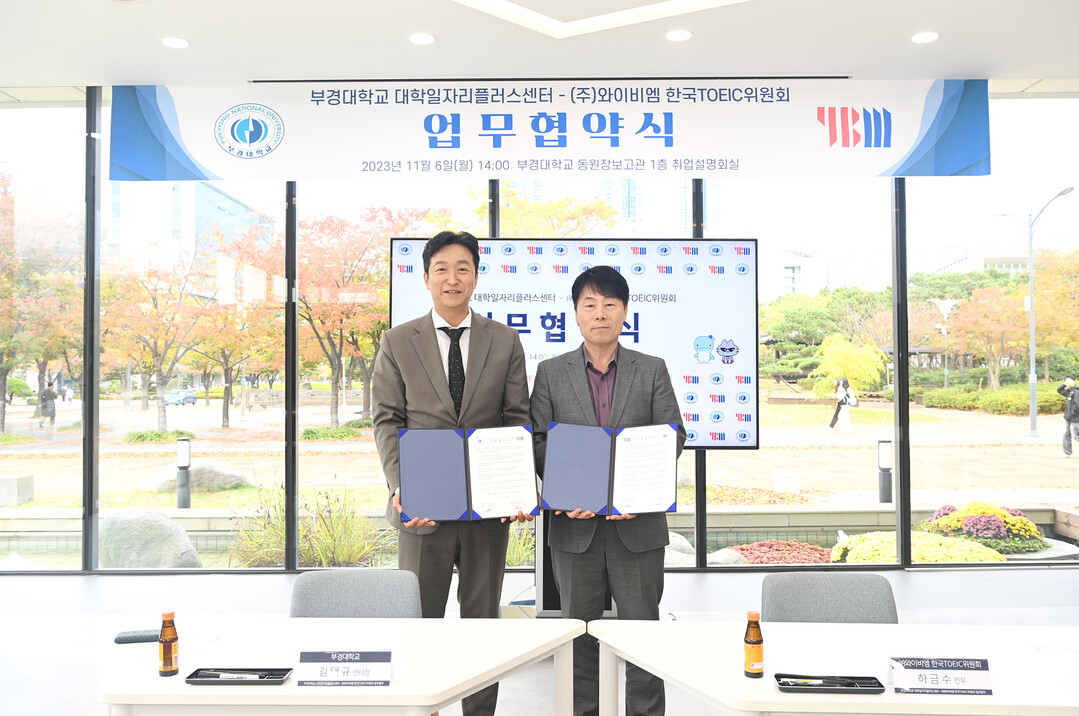 [대학저널 이선용 기자] 부경대학교 대학일자리플러스센터와 ㈜와이비엠 한국토익(TOEIC)위원회가 6일 산학협력 협약을 체결했다.